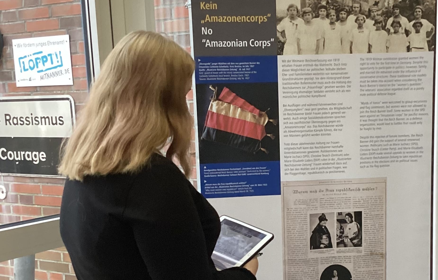 „Für Freiheit und Republik! Das Reichsbanner Schwarz-Rot-Gold im Kampf für die Demokratie 1924 bis 1933“ ist der Titel einer Wanderausstellung, die vom 04.11. bis 07.11.2025 gezeigt wurde. Die aus 32 Bannern bestehende Ausstellung wurde im Forum der Schule präsentiert. Sie entstand in Kooperation der Gedenkstätte Deutscher Widerstand und dem Reichsbanner Schwarz Rot Gold Bund aktiver Demokraten.
